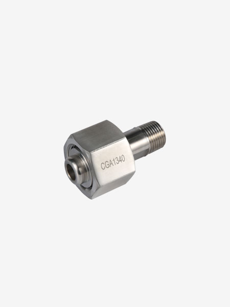 钢瓶接头适用连接钢瓶与减压器或气体管路,有3种形式:1/4NPT,1/4VCR,1/4焊接式,接头采用优质不锈钢制造,可用于特种气体及医用气体。